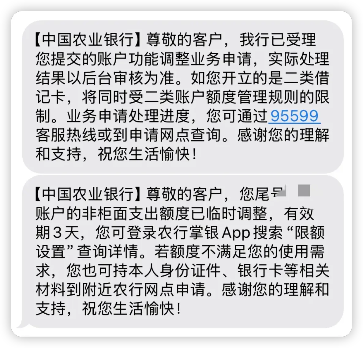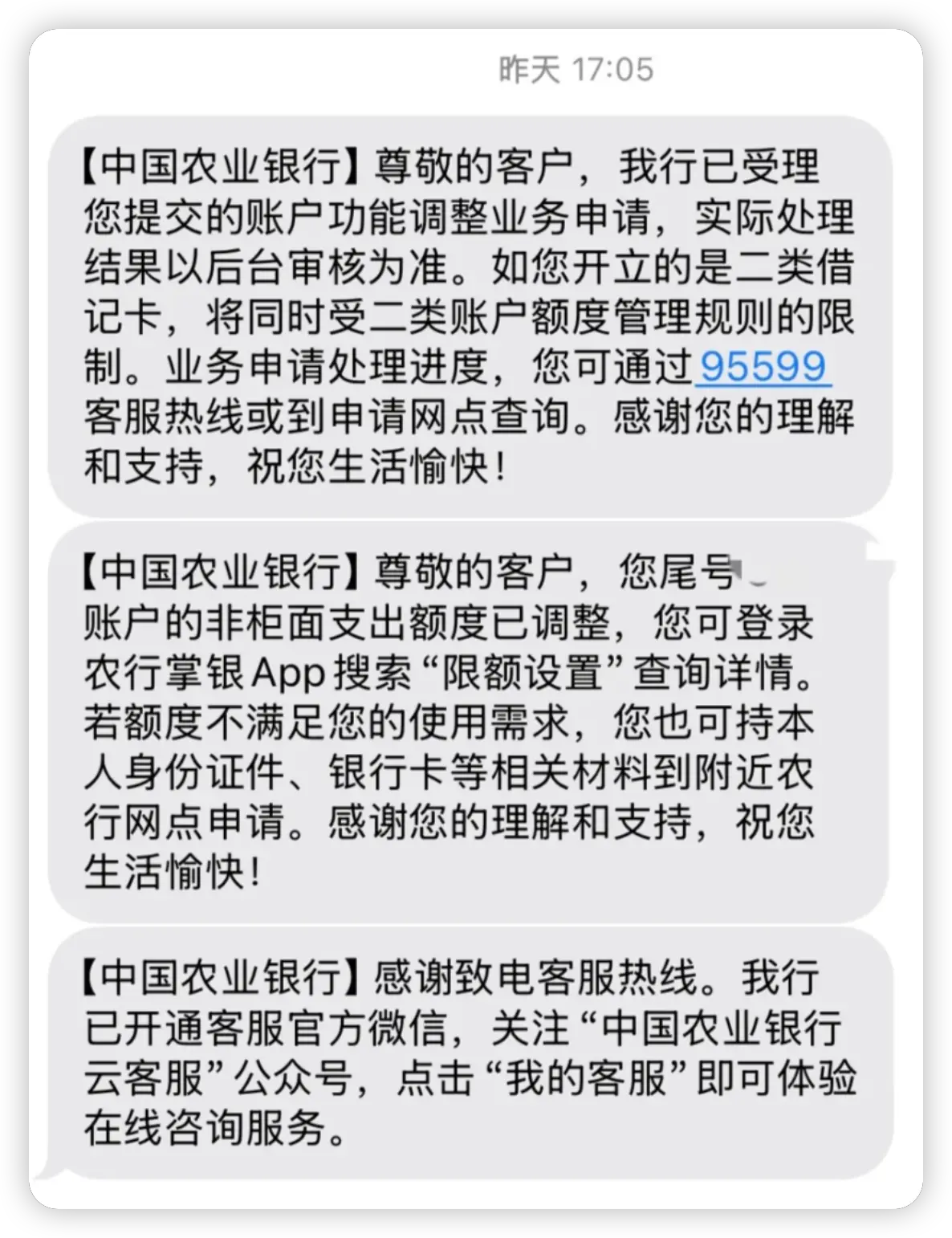 当时我还以为是账户出问题了,后来在小红书上看到有人分享,说可以通过拨打 95599 农行客服电话 来申请解除限额。于是我也试了一下。