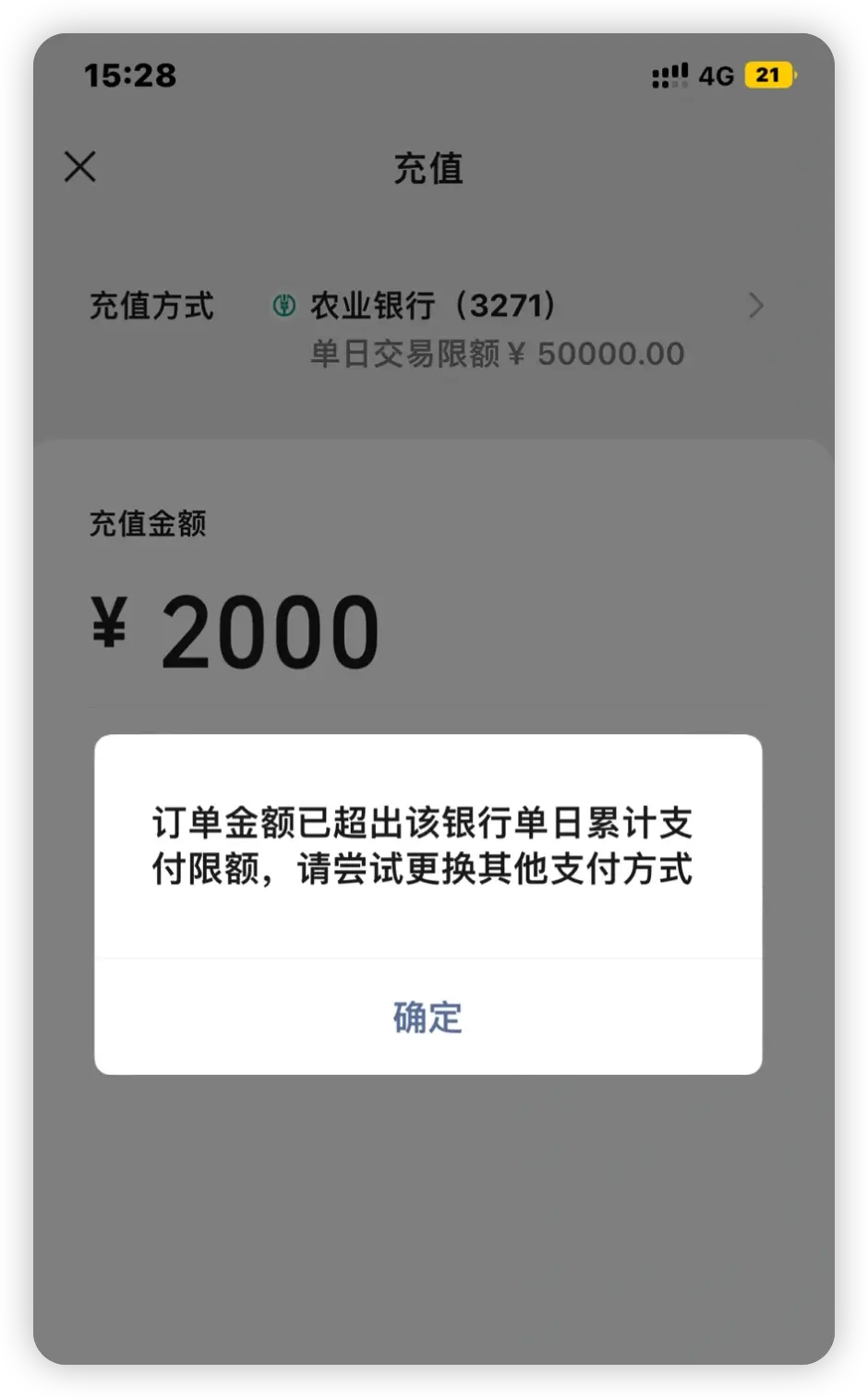 上个月因为临时需要一笔资金,我往自己的农业银行卡里转了 2 万块钱。没想到几天后准备再转出时,系统却提示“超出限额”,每天只能转出 1000 元。