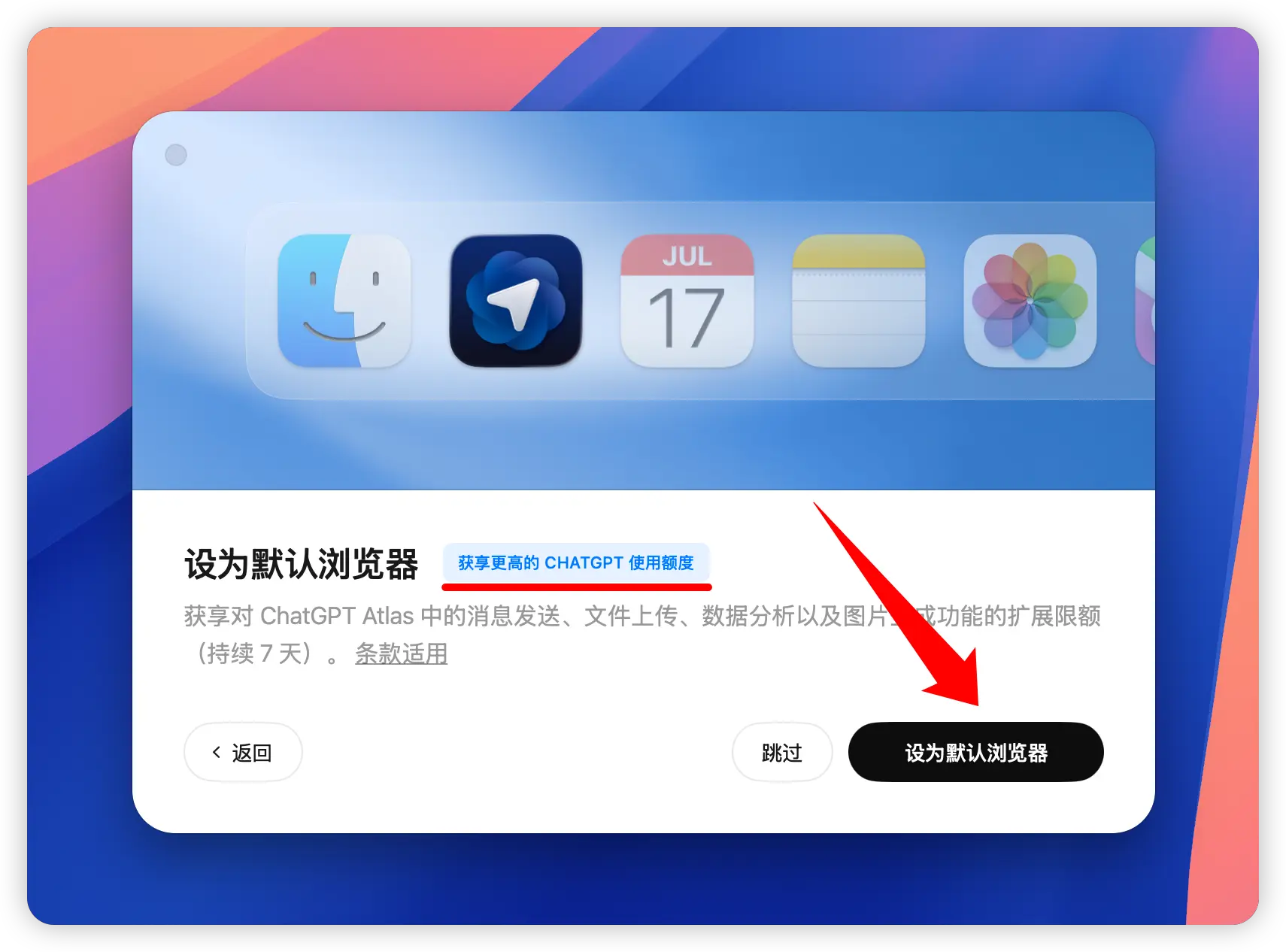 在系统设置中可以将 Atlas 设置为默认浏览器,让所有链接都自动使用 Atlas 打开。