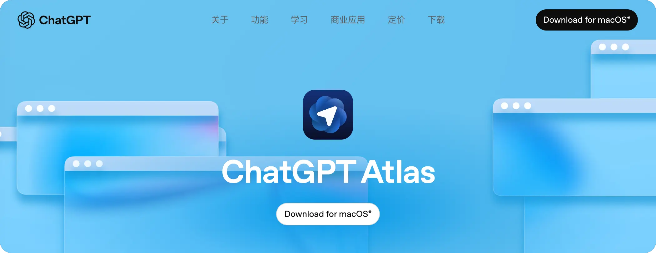官方下载地址(当前仅支持 macOS 系统): OpenAI Atlas 官网下载页