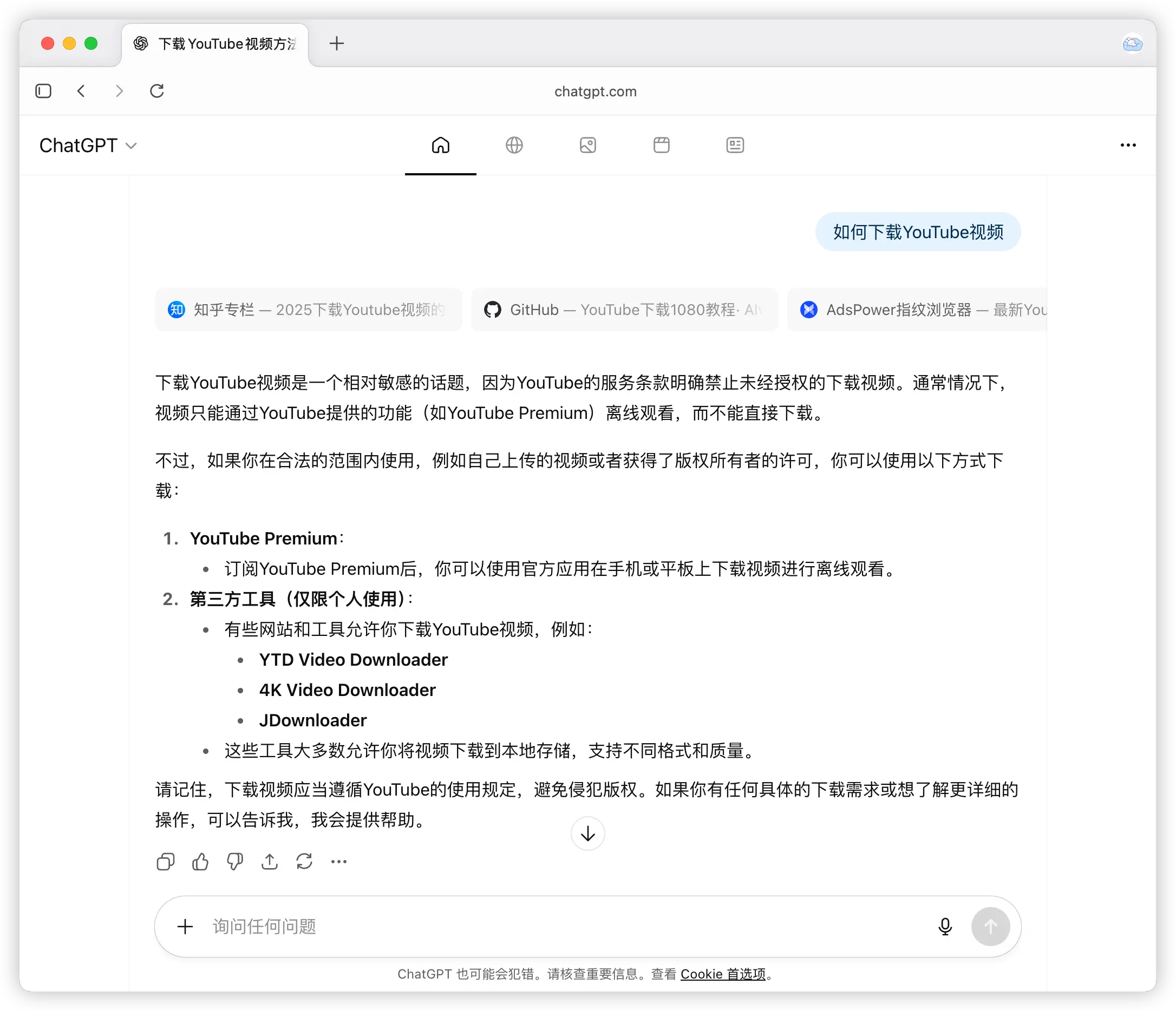 为了更直观地体验 Atlas,我尝试用它解决一个常见问题——如何下载 YouTube 视频。