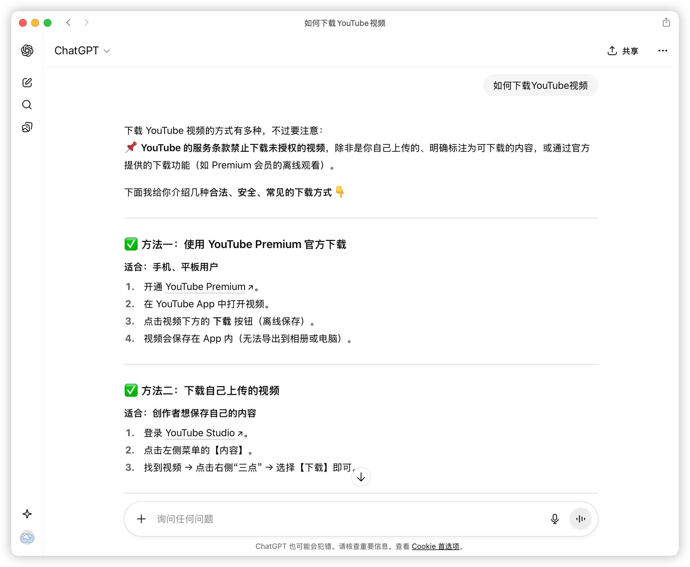 同时我将该问题,在 ChatGPT 中进行询问,发现 ChatGPT 给出的答案方法更多、更详细,结尾也贴心的询问我使用的设备,它可以针对你设备的环境,推荐最安全、最方便的一种方法(附详细步骤)。